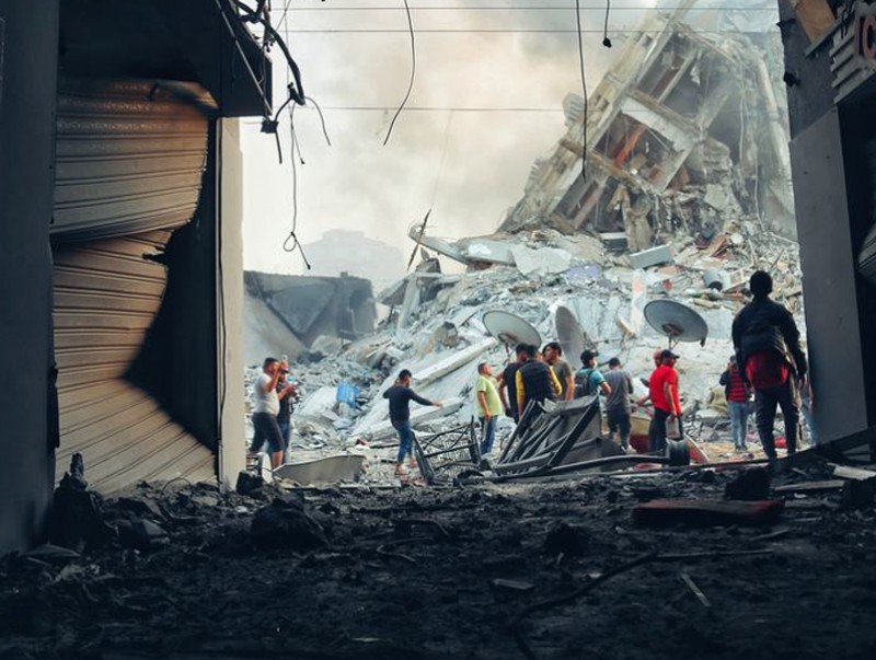 Халдлага болсны маргааш нь авсан дүрс бичлэгт хүмүүнлэгийн тусламжийн бүлгийн гишүүд аврах ажиллагаа явуулж байгааг харуулжээ.