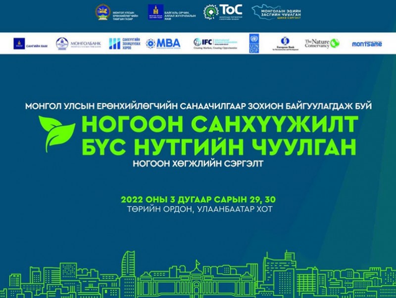 Монгол Улсын Ерөнхийлөгчийн ивээл дор 2022 оны 03 дугаар сарын 29-30-ны өдөр Төрийн ордонд “Ногоон санхүүжилт-Бүс нутгийн чуулган”-ыг зохион байгуулах гэж байна.