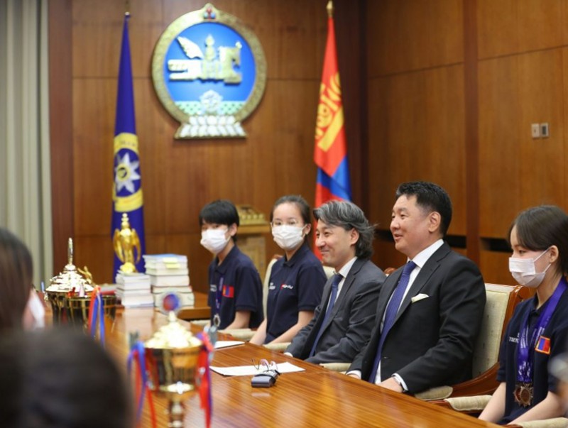 Монгол Улсын Ерөнхийлөгч Ухнаагийн Хүрэлсүх 30 дахь удаагийн Ой тогтоолтын дэлхийн аварга шалгаруулах тэмцээнд түрүүлсэн баг тамирчдыг хүлээн авч уулзаж, баяр хүргэв.