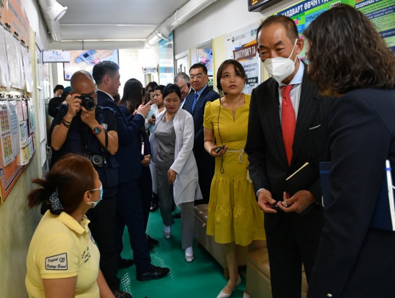 Дэлхийн эрүүл мэндийн байгууллагын Номхон далайн баруун бүсийн захирал Др Такеши Касай болон ажлын хэсгийн бүрэлдэхүүн СХД-ийн “Гурван жаргал хайрхан” өрхийн эрүүл мэндийн төвд өнөөдөр ажиллалаа.