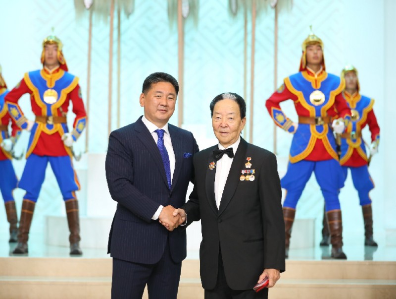 Тулгар Төрийн 2230, 2231, Их Монгол Улсын 815, 816, Үндэсний эрх чөлөө, тусгаар тогтнолоо сэргээн мандуулсны 110, 111, Ардын хувьсгалын 100, 101 жилийн ойг тохиолдуулан Монгол Улсын Ерөнхийлөгч Ухнаагийн Хүрэлсүх амжилт бүтээлээрээ шалгарсан эрхмүүдэд төрийн дээд цол, одон, медаль гардуулж байна.