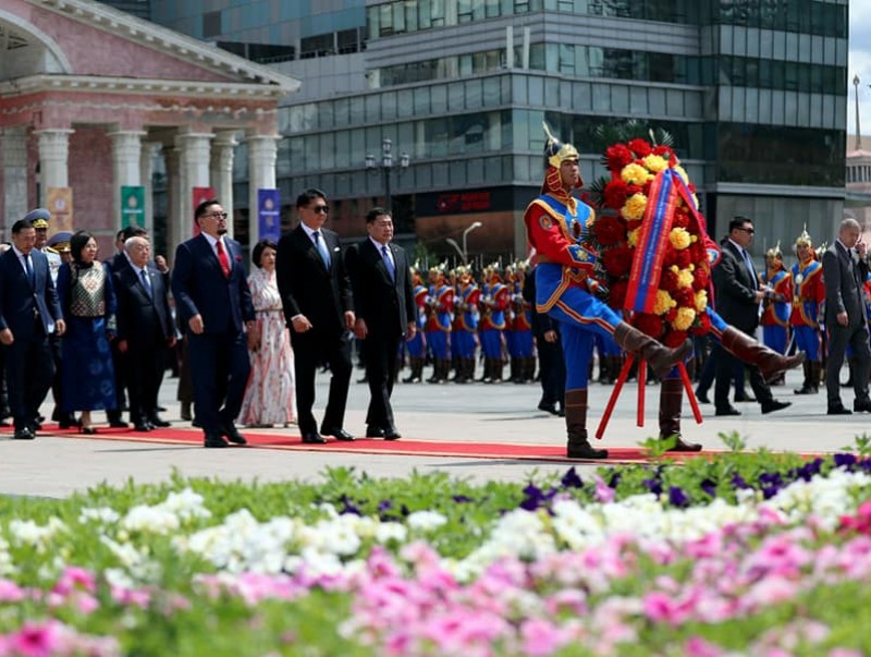 Тулгар төрийн 2230, 2231, Их Монгол Улсын 815, 816, Үндэсний эрх чөлөө, тусгаар тогтнолоо сэргээн мандуулсны 110, 111, Ардын хувьсгалын 100, 101 жилийн ой, Үндэсний их баяр наадмыг тохиолдуулан Монгол Улсын Ерөнхийлөгч Ухнаагийн Хүрэлсүх, Улсын Их Хурлын дарга Гомбожавын Занданшатар, Ерөнхий сайд Лувсаннамсрайн Оюун-Эрдэнэ нар жанжин Д.Сүхбаатарын хөшөөнд цэцэг өргөж, Их эзэн Чингис хааны хөшөөнд хүндэтгэл үзүүлэв.