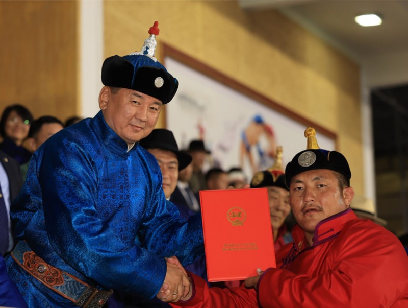 Монгол Улсын Ерөнхийлөгч Ухнаагийн Хүрэлсүх өнөөдөр зарлиг гаргаж, Тулгар төрийн 2230, 2231, Их Монгол Улс байгуулагдсаны 815, 816, Үндэсний эрх чөлөө, тусгаар тогтнолоо сэргээн мандуулсны 110, 111, Ардын хувьсгалын 100, 101 жилийн ойн Улсын баяр наадмын Үндэсний бөхийн барилдаанд долоо давж “Улсын заан” цолны болзол хангасан бөхчүүдэд цол олголоо.