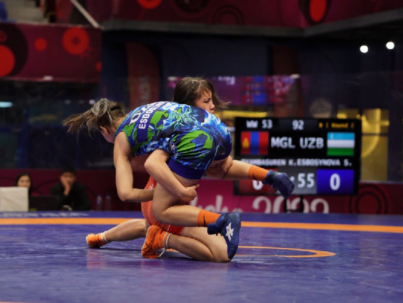 Тэрбээр 1/8 шигшээд Сербийн Милича Секуловичийг 10:0-ээр, шөвгийн наймд АНУ-ын Елена Ноэл Ивалдиг цэвэр ялсан ч хагас шигшээд өнгөрсөн жилийн өсвөр үеийн дэлхийн болон Европын аварга Украины Мария Ефремовад цэвэр ялагдсанаар хүрэл медалийн төлөө барилдахаар болжээ.