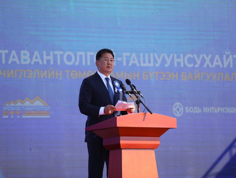 Тэгвэл өнөөдөр манай улсын экспортын гол гарц болох Тавантолгой-Гашуунсухайт чиглэлийн төмөр замыг ашиглалтад оруулж, та бид хамтдаа энэ түүхэн үйл явдлын гэрч болж байгаадаа Төрийн тэргүүн, Улсын Ерөнхийлөгч туйлын их баяртай байна.