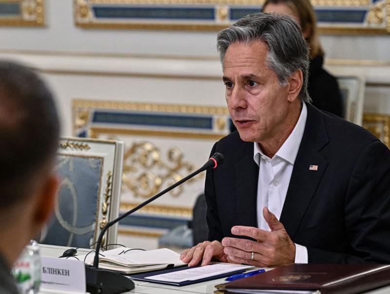 Өнгөрсөн хоёрдугаар сард ОХУ Украинд цэрэг дайны ажиллагаа эхлүүлсэн цагаас хойш Америкийн Төрийн нарийн бичгийн дарга Украин улсад 2 дахь удаагаа очиж, Ерөнхийлөгч Володимир Зеленскийтэй уулзалт хэлэлцээ хийлээ.
