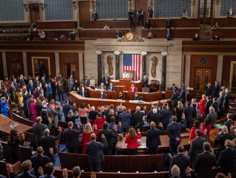 Шинэ гишүүдийн тангараг өргөх ёслолын ажиллагааг Конгрессын Төлөөлөгчдийн танхимын дарга Нэнси Пелоси удирдан явуулж, гишүүд улс эх орон, ард түмнийхээ эрх ашгийг хамгаалан, өөрийн бүхий л хүчин чадлыг дайчлан ажиллахаа илэрхийлжээ.