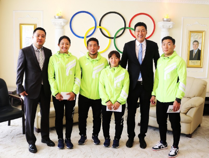 МҮОХ-ны ерөнхийлөгч Б.Баттүшиг ДАШТ-ээс медаль хүртсэн тамирчдыг дасгалжуулагчдын хамт өнөөдөр Олимпик хауст хүлээн авч уулзлаа.