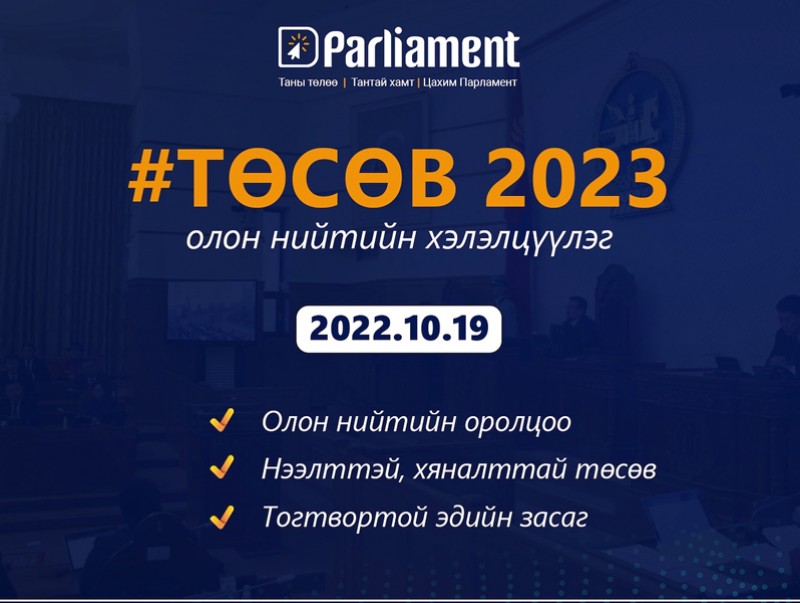 УИХ-аас төсвийг олон нийтийн дунд нээлттэй хэлэлцүүлж байгаа анхны тохиолдол юм. Энэ талаар 2022 оны 10 дугаар сарын 07-ны өдөр УИХ-ын гишүүн, Төсвийн байнгын хорооны дарга Г.Тэмүүлэн мэдээлэл хийлээ.