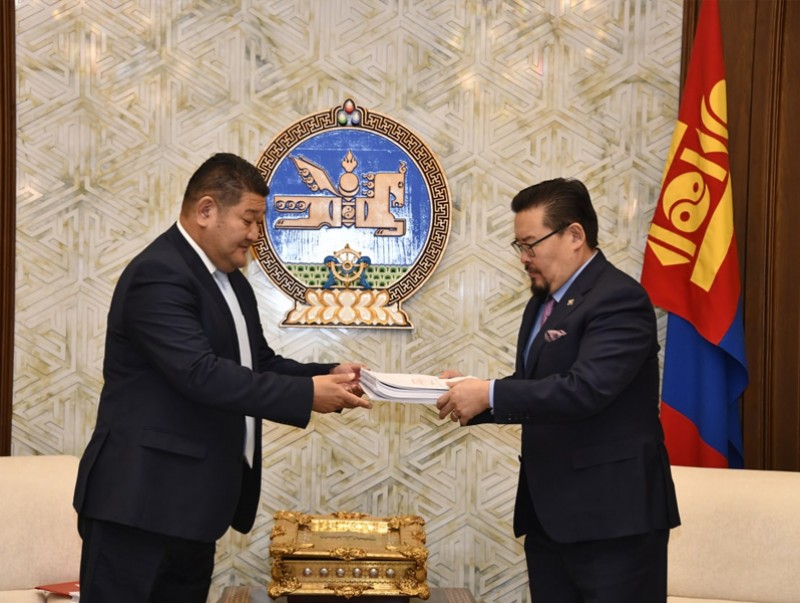 Барилга, хот байгуулалтын сайд Б.Мөнхбаатар Геодези, зураг зүйн тухай хуулийн шинэчилсэн найруулгын төслийг УИХ-ын дарга Г.Занданшатарт өргөн мэдүүллээ.