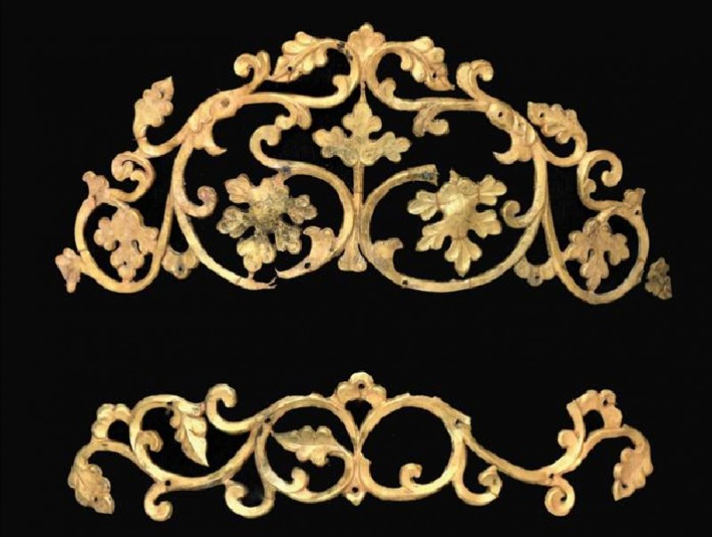 Титмийн хээ угалзанд олон жижиг нүх, хадаасны ором байгаа нь уг титмийг тусгай малгайн дээр хадаж тогтоодог байсныг илтгэнэ.