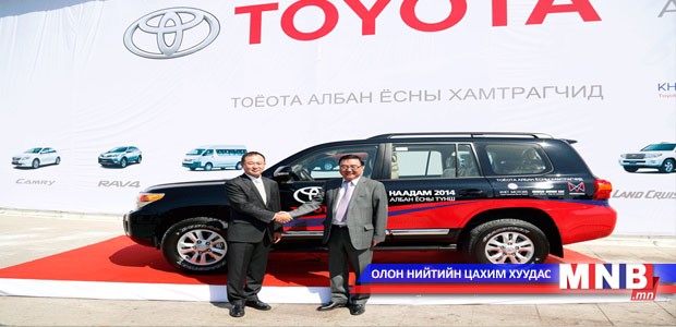 Их Монгол Улс байгуулагдсаны 808, Ардын хувьсгалын 93 жилийн ой, Үндэсний их баяр наадмын албан ёсны түншээр Японы Тоёота компани ажиллаж байгаа бөгөөд энэ жил анх удаа Үндэсний бөхийн барилдаанд түрүүлсэн бөхийг “Ланд крузер-200” маркийн авто машинаар шагнахаар болсон юм.