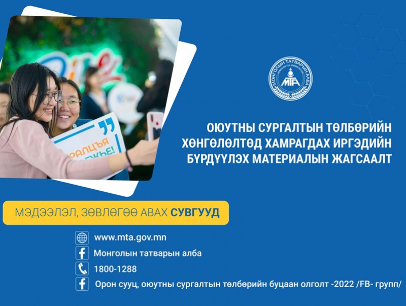 Монгол Улсын Үндсэн хуулиар хүлээсэн татвар төлөх үүргээ биелүүлж байгаа иргэн таны хүүхэд дотоод, гадаадын их дээд сургуульд суралцаж байгаа эсхүл өөрөө анх удаа суралцаж байгаа тохиолдолд оюутны сургалтын төлбөрийн хөнгөлөлтөд хамрагдах эрхтэй байдаг.