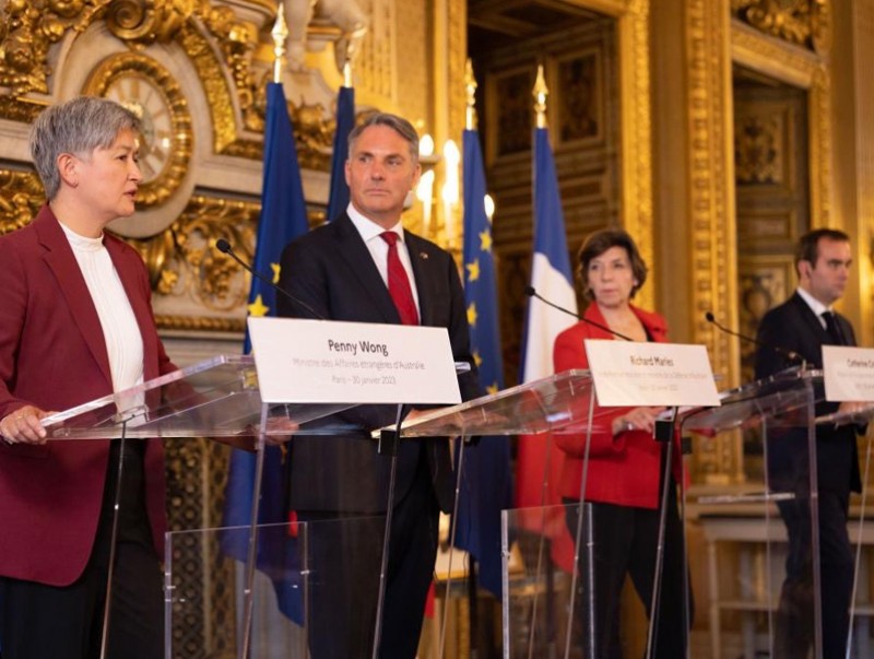 Австрали улс 2021 онд Францын ердийн шумбагч онгоцны 60 тэрбум ам.долларын гэрээг нууцаар цуцалж, оронд нь АНУ, Их Британитай хийсэн цөмийн хөдөлгүүртэй шумбагч онгоцны хэлэлцээрийг дэмжсэн нь Франц-Австралийн харилцаанд ноцтой ан цав үүсгэсэн түүхтэй. 2 улсын батлан хамгаалахын сайд нар Парис хотноо уулзаж хэлэлцэхдээ Украинд их бууны сум үйлдвэрлэх ажлыг Австралийн үйлдвэрлэгчидтэй хамтран Францын "Некстер" үйлдвэр удирдан явуулна гэж тохирсноо зарлалаа.