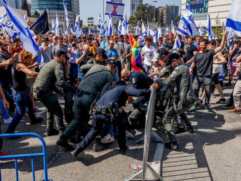 Лхагва гарагт Израилийн Тель-Авив болон хэд хэдэн хотод шүүх шинэчлэлийг эсэргүүцсэн иргэд жагслаа. Жагсаалын үеэр эсэргүүцэгчид хотын гудамжуудыг хааж, цагдаа нар хүч хэрэглэхээс өөр аргагүй болжээ.