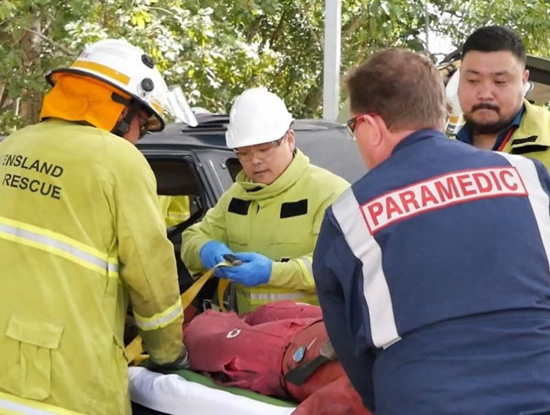 Төслийн багийн очсон дараагийн байгууллага бол Квийсланд мужийн Гал унтраах, яаралтай тусламжийн төв юм. Тус төвөөс зохион байгуулсан ослын газар дээрээс эмнэлэг хүртэлх яаралтай тусламж үзүүлэх сургуулилтад Онцгой байдлын ерөнхий газрын Тасгийн дарга, дэд хурандаа Д.Хонгор, төслийн парамедик зөвлөх Данкэн Макконелл нар биечлэн оролцсон.