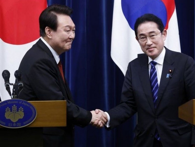 Японы ерөнхий сайд Кишида Фумио, Өмнөд Солонгосын Ерөнхийлөгч Юн Сок Ёль нар хоёр талын харилцааг хэвийн голдиролд нь оруулах үйл явц сэргэснийг санал нэгтэй хүлээн зөвшөөрлөө. Ням гарагт Сөүлд хийсэн уулзалтынхаа үеэр тэд ингэж мэдэгджээ. Кишидагийн айлчлал, 12 жилийн турш завсардсан Япон, Өмнөд Солонгосын удирдагчдын харилцан айлчлалын цикл бүрэн сэргэсний илэрхийлэл болж байна.