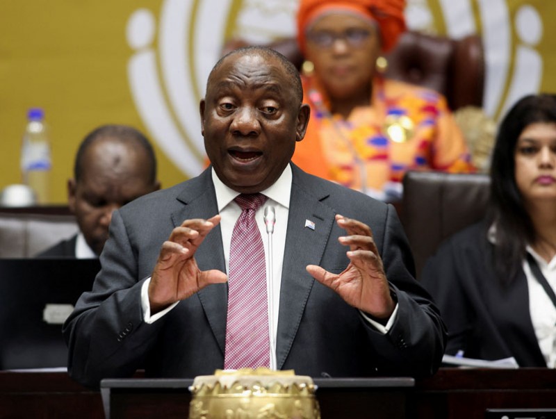 Өмнөд Африк улс хэдийгээр “ер бусын их шахалт дарамттай” тулгарч байсан боловч “дэлхийн гүрнүүдийн хоорондох тэмцэлдээнд” татагдаж ороогүй гэж Рамафоза хэлсэн байна. НҮБ-ын тогтоолуудтай холбоотой санал хураалтуудад Өмнөд Африк улс түдгэлзсэн санал өгч ирсэн юм.