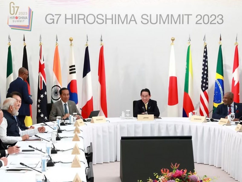 Японы Хирошима хотод өнөөдөр Долоогийн бүлгийн дээд хэмжээний уулзалт хоёр дахь өдрөө үргэлжиллээ. Энэ өдрийн уулзалт яриа хэлэлцээгээр, хөгжиж байгаа орнуудтай холбоо харилцаагаа өргөжүүлэх, хүнсний хямрал, эрчим хүчний аюулгүй байдлын асуудал зонхилон яригдсан байна. Мөн хүч нөлөө нь улам бүр тэлж хүчирхэгжиж байгаа Хятадын талаар баримтлах бодлогоо нэгтгэсэн Хамтарсан мэдэгдэл, мөн Уулзалтын төгсгөлийн баримт бичгээ баталсан байна.