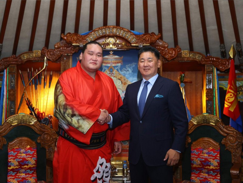| Ерөнхийлөгч У.Хүрэлсүх их аварга Тэрүнофүжи Г.Ган-Эрдэнийг хүлээн авч уулзлаа | ||
