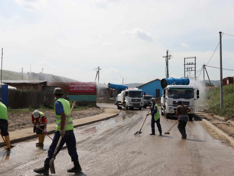 Уруйн үер буусан Баянзүрх дүүргийн 21, 27, 29 дүгээр хороо буюу Дарь-Эх, Монел орчим буюу ариутгал, халдваргүйжүүлэлтийн ажил үргэлжилж байна. Тодруулбал, ариутгал, халдваргүйжүүлэлтийн тусгай зөвшөөрөлтэй зургаан компани таван мананцар үүсгэгч автомашинаар өдөрт хоёр удаа ариутгал хийж байгаа. Мөн үерт өртсөн айлуудын хашаа, нүхэн жорлонг ариутгах ажлыг өчигдрөөс эхлэн шат дараатай хийж буй.