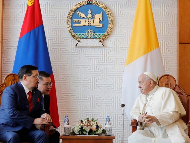 Улсын Их Хурлын дарга Г.Занданшатар Монгол Улсын Ерөнхийлөгчийн урилгаар хоёр улсын харилцааны түүхэнд анх удаа дээд түвшинд айлчлал хийж байгаад бид баяртай байгаагаа уулзалтын эхэнд тэмдэглэв. Тэрбээр, манай улсад хийж буй Гэгээн Ширээт Улсын Төрийн тэргүүн Пап Францисын төрийн айлчлал хоёр талын харилцаанд түүхэн шинэ хуудас нээж, даян дэлхийн энх тайван, амар амгаланг цогцлоож, хүн төрөлхтний нийтлэг эрх ашгийг бэхжүүлэхэд чухал ач холбогдолтой болж байгааг тэмдэглэж, эртний түүхэн харилцаатай Гэгээн Ширээт Улстай найрсаг харилцаа, хамтын ажилагаагаа өргөжүүлэн бэхжүүлэх нь Монгол Улсын гадаад бодлогын чухал зорилтуудын нэг мөн гэдгийг тэмдэглэв.