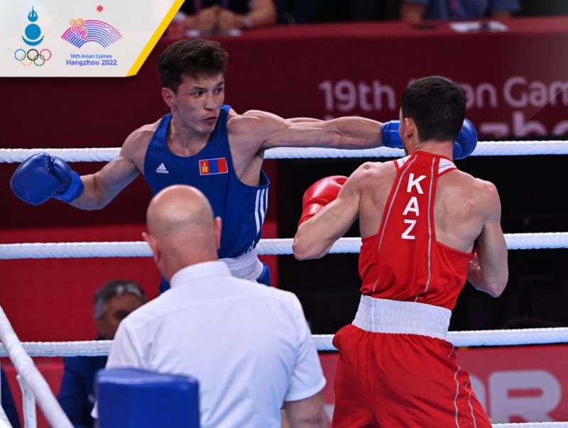 "Ханжоу-2022" Азийн наадмын Боксын эрэгтэйчүүдийн 63 кг-д хүч сорьж буй Б.Чинзориг Казахстаны боксчин Ертуган Жейнуллиновыг оноогоор ялснаар медалийн болзол хангалаа.