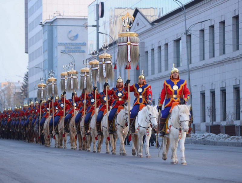 Өвлийн тэргүүн сарын шинийн нэгэн, Эзэн Богд Чингис хааны мэндэлсний 861 жилийн ой, “Монгол бахархлын өдөр”-ийг тохиолдуулан Монгол Улсын Төрийн далбааг Д.Сүхбаатарын талбайд мандуулж, Төрийн есөн хөлт Их цагаан тугийг цэнгүүлэв.