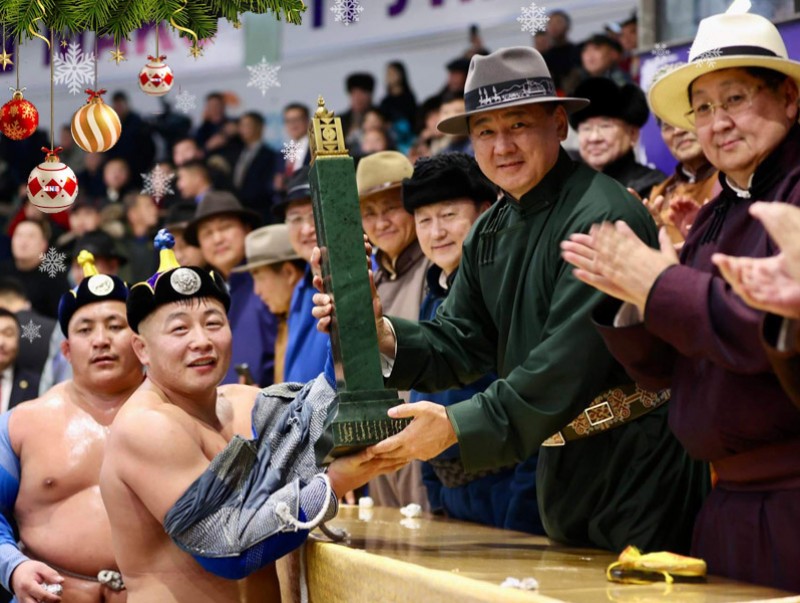 Монгол Улсын Ерөнхийлөгч Ухнаагийн Хүрэлсүх Ерөнхийлөгчийн нэрэмжит шилжин явах цомыг Улсын начин Д.Амарсайханд гардуулж, баяр хүргэсэн юм.