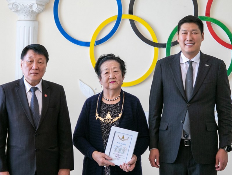 Өнөөдөр ОУОХ-ны Гишүүн, МҮОХ-ны Ерөнхийлөгч Б.Баттүшиг, Тэргүүн дэд ерөнхийлөгч Ч.Наранбаатар, Гүйцэтгэх зөвлөлийн гишүүн П.Буяндэлгэр нар өдгөө энх тунх буй “Инсбрук 1964” Олимпын наадамд оролцогч, ахмад тамирчид, зүтгэлтнүүд Л.Дашдэмбэрэл, Б.Зундуй, Д.Пүрэвлоов, Л.Боль нарыг хүлээн авч хүндэтгэл үзүүлэн, МҮОХ-ны тэргүүн дээд шагнал “Алтан од” одонг гардууллаа.
