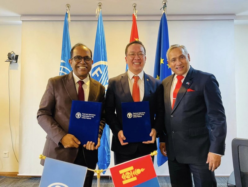 БОАЖ-ын сайд Б.Бат-Эрдэнэ, НҮБ-ын Хүнс, хөдөө аж ахуйн байгууллагын Монгол дахь Суурин төлөөлөгч Винод Ахужа нар НҮБ-ын ХХААБ болон Европын Холбоо Ойн засаглал ба нэмүү өртгийн сүлжээний хөтөлбөрийг хамтран хэрэгжүүлэх баримт бичигт гарын үсэг зурлаа.