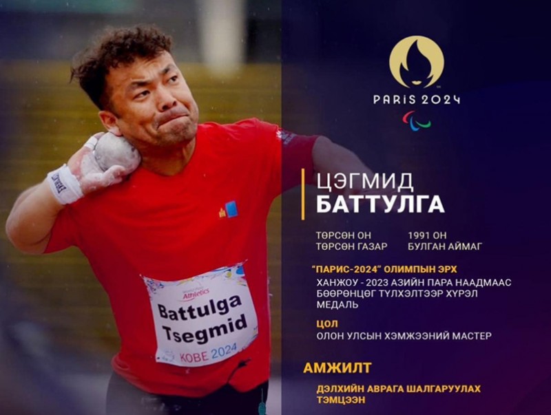 Пара хөнгөн атлетикийн ОУХМ Цэгмид овогтой Баттулга нь F-40 ангиллын бөөрөнцөг түлхэлтийн төрлөөр "Парис-2024" зуны паралимпийн наадамд эх орноо төлөөлөн оролцоно.