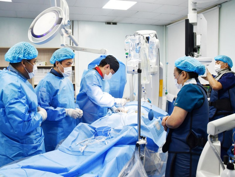 Анхны мэс заслыг тус эмнэлгийн харьяа зүрх судасны үндэсний төвийн дарга, зүрхний хэм судлалын их эмч Х.Мөнгөн-Өлзий өөрийн баг бүрэлдэхүүний хамтраа гардан хийж гүйцэтгэсэн бөгөөд БНХАУ-ын Шанхай хотын Рүйжин эмнэлгийн Профессор Ву Ли Чунгаар ахлуулсан зочин баг хяналт тавьж хамтран ажиллалаа.
