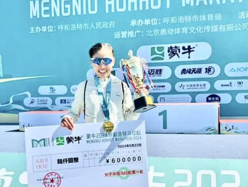 БНХАУ-ын ӨМӨЗО-ны Хөх хотод марафон болсон бөгөөд манай улсаас дөрвөн тамирчин өрсөлдөхөд Үндэсний шигшээ багийн тамирчин Б.Мөнхзаяа хагас марафон буюу 21 км-ын зайг 1:16.38 цагийн амжилтаар туулж, алтан медаль хүртлээ.