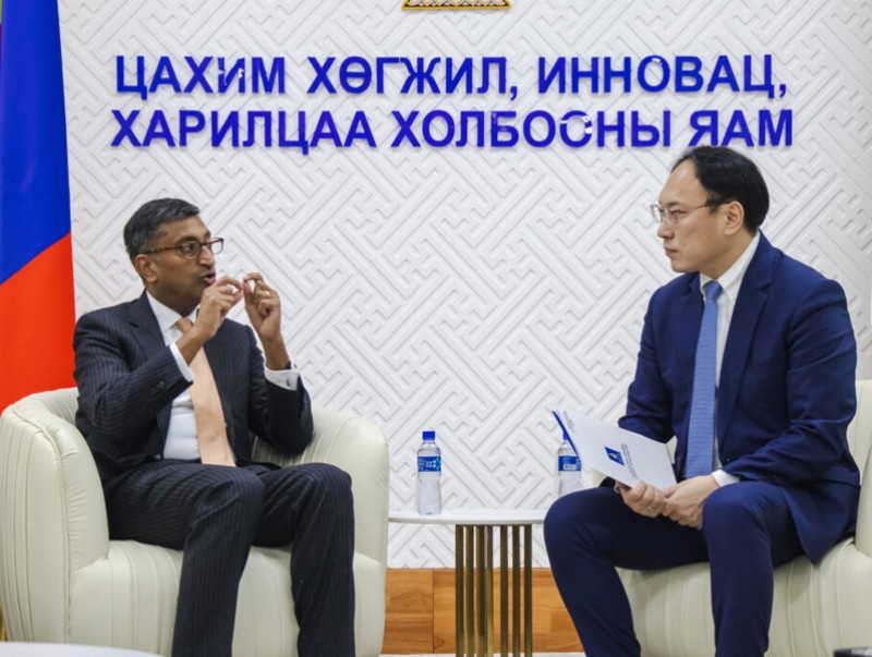 Цахим хөгжил, инновац, харилцаа холбооны сайд Ц.Баатархүү “Монгол Улсын Засгийн газрын 2024–2028 оны үйл ажиллагааны хөтөлбөрт хиймэл оюун, их өгөгдөл зэрэг дэвшилтэт технологийг бусад салбарт нэвтрүүлэх, инновац, гарааны бизнес эрхлэгчдийг дэмжих, хүний нөөцийг чадавхжуулах зэрэг үндэсний хэмжээний томоохон ач холбогдолтой арга хэмжээ, төсөл хөтөлбөрүүдийг хэрэгжүүлэхээр тусгасан. Мөн Кибер аюулгүй байдал, цахим хөгжилд ихэд анхаарч, эрсдэлийн түвшнийг тодорхойлохоор олон байгууллагатай хамтран ажиллаж байна. Мэдээллийн технологийн хүний нөөцийг чадавхжуулах шаардлага их байгаа тул кибер аюулгүй байдлын чиглэлээр мэргэжилтэн бэлтгэхэд Канадын их, дээд сургуулиудтай хамтрах, хамтарсан хөтөлбөрийг МУИС, ШУТИС дээр түшиглэн байгуулах чиглэлээр хамтран ажиллахыг хүсэж байна. Түүнчлэн цахим эдийн засгийг хөгжүүлэхэд анхаарч, Мэдээллийн технологийн үйлдвэрлэл, инновацид түшиглэсэн бараа бүтээгдэхүүнийг экспортлох нөхцөлийг бүрдүүлж, УИХ-аас хууль баталсан. Цаашид энэ салбарт хамгийн ээлтэй улс болохыг зорьж байна. 2027 онд Үндэсний хиймэл дагуулаа хөөргөж, сансрын эдийн засгийг хөгжүүлэх амбицтай байна. Мөн дрон туршилтын бүс байгуулах бэлтгэл ажилдаа орсон” хэмээн ярилаа.