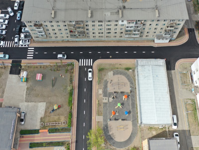 Тус ажлыг "Хэрмээдэй" ХХК гүйцэтгэж байгаа бөгөөд 95 автомашины зогсоол, 2280 ам метр авто зам, явган хүний зам болон тохижилт хийж байгаа юм.