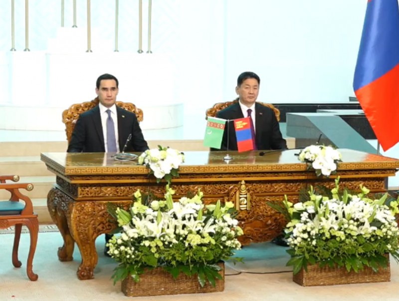| Монгол Улсын Ерөнхийлөгч У.Хүрэлсүх, Туркменистан Улсын Ерөнхийлөгч Сердар Бердымухамедов нар албан ёсны баримт бичигт гарын үсэг зурах ёслол | ||