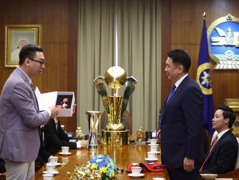 Монгол Улсын Ерөнхийлөгч Ухнаагийн Хүрэлсүх Монголын сагсан бөмбөгийн холбооны Үндэсний дээд лигийн есөн удаагийн аварга “Хасын хүлэгүүд” багийн бүрэдлэхүүнийг хүлээн авч уулзлаа.