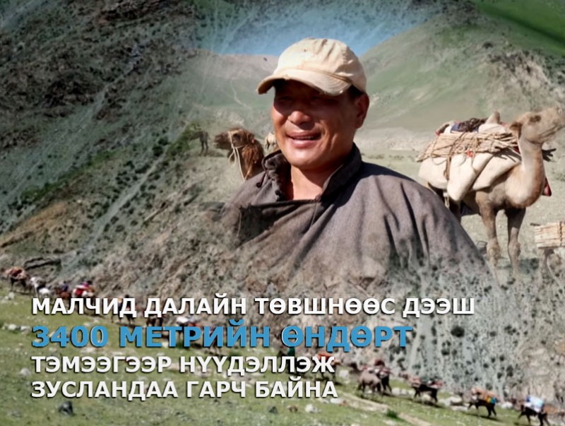 | Малчид далайн төвшнөөс дээш 3400 метрийн өндөрт тэмээгээр нүүдэллэж зусландаа гарч байна | ||