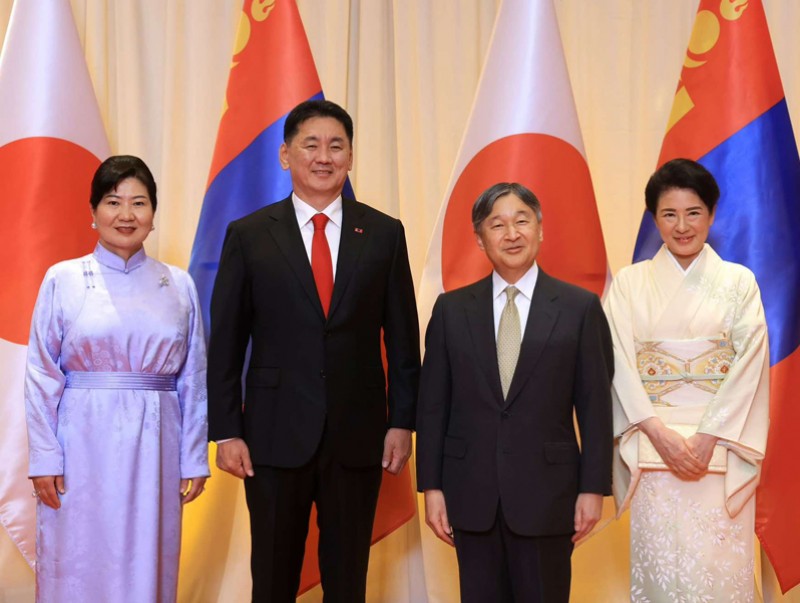 Монгол Улсын Ерөнхийлөгч Ухнаагийн Хүрэлсүхийн урилгаар хүрэлцэн ирсэн Япон Улсын Цог Жавхлант Эзэн Хаан Нарүхито-гийн төрийн айлчлал үргэлжилж байна. Ерөнхийлөгч У.Хүрэлсүх, гэргий Л.Болорцэцэг нар Япон Улсын Цог Жавхлант Эзэн Хаан Нарүхито, Эрхэм дээд Хатан Масако нарыг хүндэтгэн төрийн зоог барилаа.