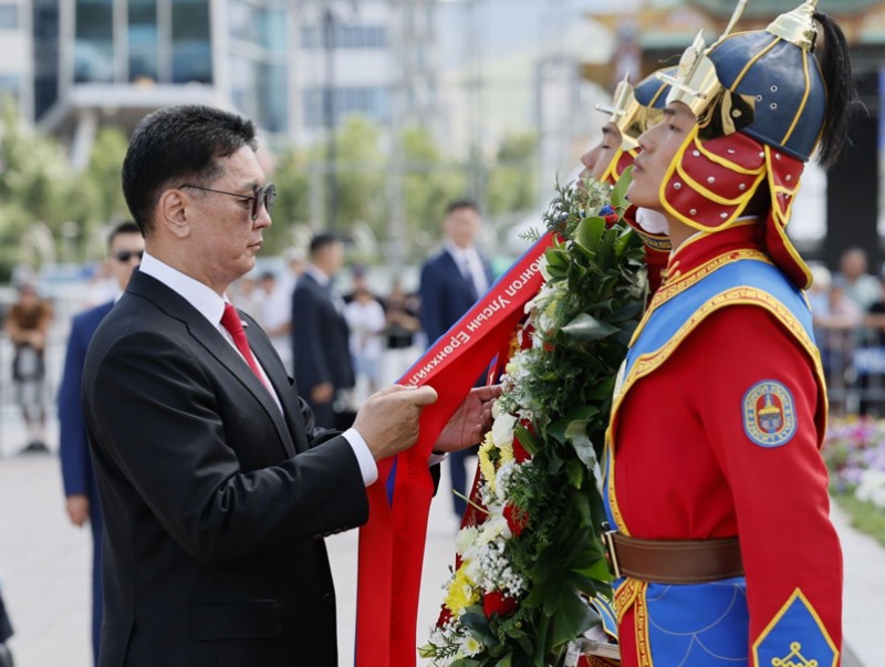 | Жанжин Д.Сүхбаатарын хөшөөнд цэцэг өргөж, Их эзэн Чингис хааны хөшөөнд хүндэтгэл үзүүллээ | ||