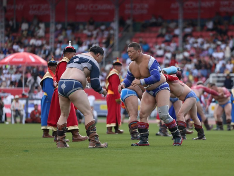"Эв мөнхийн тусгаар Монгол” нэрийн дор зохион байгуулагдаж буй Тулгар төрийн 2232, Их Монгол Улсын 817, Үндэсний эрх чөлөө, тусгаар тогтнолоо сэргээн мандуулсны 112, Ардын хувьсгалын 104, Ардчилсан хувьсгалын 35 жилийн ойн Үндэсний их баяр наадмын хүчит бөхийн барилдааны гурав даваад байгаа аймаг болон цэргийн цолтой бөхчүүдийг танилцуулж байна.