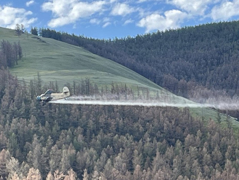 Ойн хөнөөлт шавжтай үүргийн шүршигч багаж ашиглан микробиологийн аргаар тэмцэх ажлыг Завхан аймгийн Нөмрөг суманд 1000 га талбайд, Түдэвтэй суманд 1000 га талбайд, Сонгино сумын ойн санд 2000 га талбайд тэмцэх ажлыг 2025 оны 07 дугаар сарын 25-ны өдрөөс эхлэн ойн мэргэжлийн байгууллага Гранд Форест ХХК гүйцэтгэж байна.