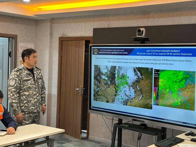 Түүнчлэн үер, усны ослоос урьдчилан сэргийлэх, хариу арга хэмжээг шуурхай зохион байгуулах, төлөвлөх, бэлтгэл, бэлэн байдлыг хангах чиглэлээр нийслэл, аймгийн Шуурхай штабыг мэргэжил, аргазүйгээр ханган, тухай бүрт мэдээллийг хүргэж байгаа юм.