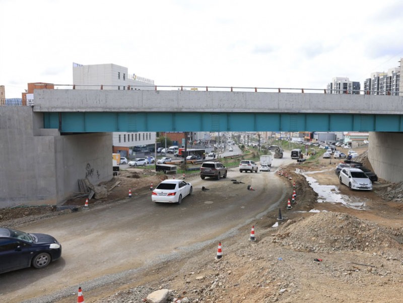 “Монгол зам” группийн ерөнхий инженер Б.Нямдагва “Төслийн газар шорооны ажил 95 гаруй хувьтай байна. Харин хиймэл байгууламжууд буюу тулц хана, гүүрэн байгууламжийн ажлыг үе шаттайгаар хийж байгаа. “Зам 1”-ийн тулц ханын ажил бүрэн дууссан. Дулааны шугамын худгийн ажил дууссаны дараа авто замыг хучиж, хөдөлгөөнийг нээнэ. “Зам 1” нь 3,4 дүгээр хороолол буюу Ард Аюушийн өргөн чөлөөнөөс Толгойтын авто замтай холбогдож буй хэсэг юм. “Зам 2” нь эсрэг урсгалын гүүрэн байгууламж бөгөөд нийт 125 метр урттай, 21 хоногт хийж дуусгана. Гүүрэн доогуурх Ард Аюушийн өргөн чөлөөний хөдөлгөөнийг одоогийн байдлаар шороон замаар нээсэн. Нийт 3.2 км авто зам нь долоон орц, гарц, 240 метр үерийн далан, 44 метр хөндлөн ус зайлуулах хоолойтой баригдаж байна” гэлээ.