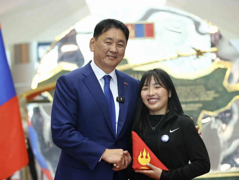 Монгол Улсын Ерөнхийлөгч Ухнаагийн Хүрэлсүх оюутан залуусыг үдэх ёслолд оролцож, сурлагын өндөр амжилт хүсэн Төрийн далбаа дурсгалаа.