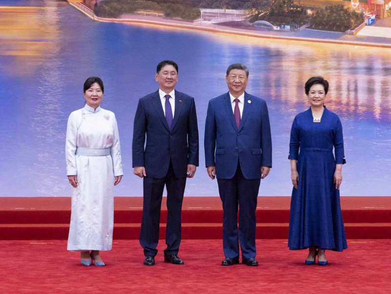ШХАБ-ын гишүүн орнуудын Төрийн тэргүүн нарын зөвлөлийн өргөтгөсөн хуралдаанд оролцохоор БНХАУ-ын Тяньжин хотноо хүрэлцэн ирсэн Монгол Улсын Ерөнхийлөгч Ухнаагийн Хүрэлсүх, гэргий Лувсандоржийн Болорцэцэг нарыг БНХАУ-ын дарга Ши Жиньпин, гэргий Пөн Лиюань нар албан ёсоор угтлаа.
