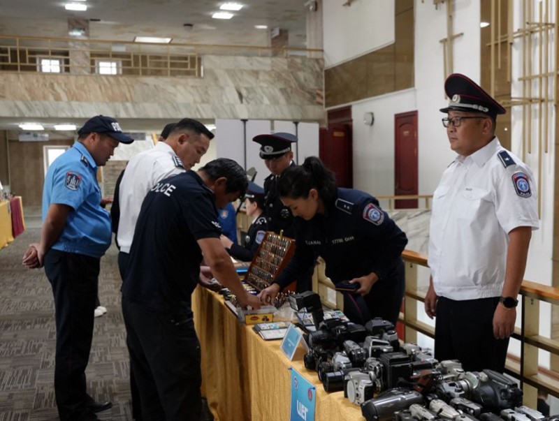 Баянхонгор аймгийн цагдаагийн газрын алба хаагч, цагдаагийн хошууч Г.Мөнгөнсүх фото зургийн аппаратны цуглуулга, Зөвшөөрөл үйлчилгээний төвийн мэргэжилтэн, Цагдаагийн хошууч Р.Шийрэвжамц цуглуулгын маркераа олон нийтэд тус тус танилцуулж өдөрлөгт оролцож байна.