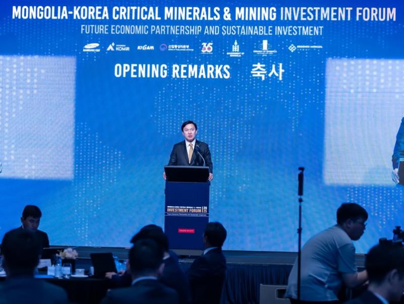 Монгол Улсын Тэргүүн Шадар сайд бөгөөд Эдийн засаг, хөгжлийн сайд Н.Учрал, Аж үйлдвэр, эрдэс баялгийн сайд Г.Дамдинням, Хөгжлийн банк, Эрдэнэс Монгол нэгдэл, Монголын Үндэсний Худалдаа Аж Үйлдвэрийн танхим зэрэг төр, хувийн хэвшлийн төлөөлөл Монгол-Солонгосын "Чухал эрдэс ба уул уурхайн форум"-д оролцож байна.
