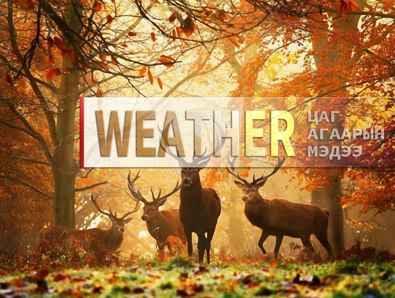 14, 15-нд баруун болон төвийн аймгуудын ихэнх нутаг, говь болон зүүн аймгуудын нутгийн зарим газраар, 16-нд баруун аймгуудын нутгийн зарим газар, төв болон зүүн аймгуудын ихэнх нутаг, говийн аймгуудын нутгийн хойд хэсгээр, 17-нд төвийн аймгуудын нутгийн зүүн хэсэг, зүүн аймгуудын ихэнх нутгаар нойтон цас, цас орж, явган шуурга шуурна. Салхи ихэнх нутгаар секундэд 5-10 метр, нутгийн зарим газраар секундэд 13-15 метр хүрч ширүүснэ. Ихэнх нутгаар сэрүүсэж, Монгол-Алтай, Хөвсгөлийн уулархаг нутаг, Завхан, Заг-Байдраг голын эх, Идэр, Тэс, Эг-Үүр голын хөндийгөөр шөнөдөө 15-20 хэм, өдөртөө 0-5 хэм хүйтэн, Хангай, Хэнтийн уулархаг нутаг, Хараа, Ерөө, Туул, Тэрэлж, Хэрлэн, Онон, Улз голын хөндийгөөр шөнөдөө 9-14 хэм хүйтэн, өдөртөө 0-5 хэм дулаан, говийн бүс нутгийн өмнөд хэсгээр шөнөдөө 4-9 хэм, өдөртөө 10-15 хэм дулаан, бусад нутгаар шөнөдөө 3-8 хэм хүйтэн, өдөртөө 3-8 хэм дулаан байна.